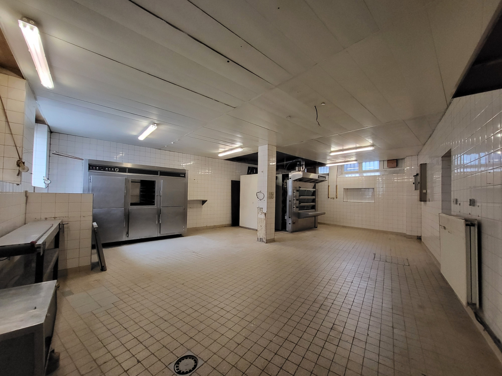 Un local commercial de 157m2 comportant un magasin, un dégagement, une pièce, une cuisine, un laboratoire, un vestiaire-cabinet de toilettes.